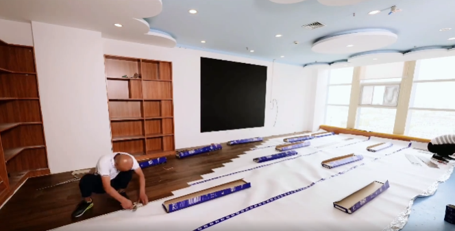 小蓝鲸石晶地板2人1天100平快速铺装展示