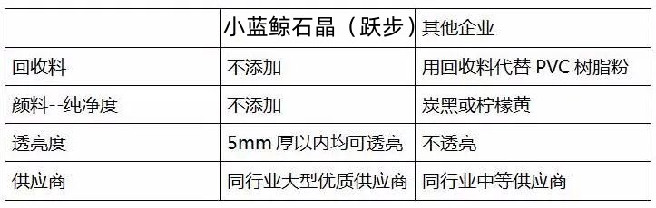 小蓝鲸石晶地板材料保证是百分之百的全新料。小蓝鲸石晶地板主要成分为碳酸钙粉(石粉)和聚氯乙烯(PVC粉)3:1的比例混合而成,这两种成分的颜色都是白色的,所以生产出来的基材颜色基本上是白色或者浅黄色。那怎么样可以看出是全新料呢?我们可以用手电筒照4mm厚的地板,如果光线可以穿透地板,则可能是全新料;若不能,那么肯定不是全新料?;亓系幕囊话愣际呛谏?,回料聚氯乙烯PVC粉一般来源于平时日用的塑料用品,比如塑料水壶,塑料水瓶,塑料包装袋子,塑料仪器等等?;亓系匕宓娜钡悖孩俨换繁?,来源不确定,可能会有重金属等,有致癌风险;②结构不稳定,尺寸稳定性差。拼装后可能导致边缘翘曲等问题材料不可回收。