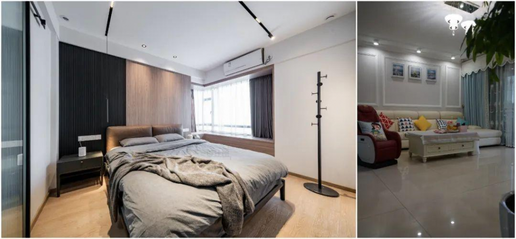 像客厅、阳台、厨房、卫生间、过道等公共区域或有水的区域,建议用耐脏好打理的石晶地板;而像书房、卧室等相对私人的空间,则可以考虑小蓝鲸带有静音地垫的真木纹石晶地板,以便打造舒适的空间体验。